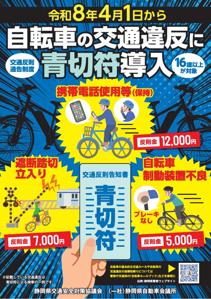 本年4月より、自転車の交通違反に交通反則通告制度(青切符)が導入されます。